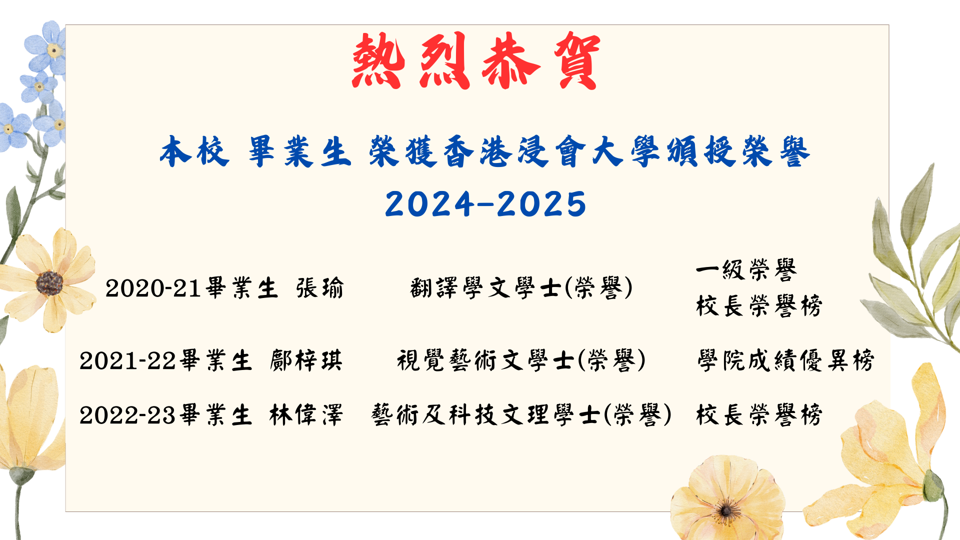 恭賀畢業生榮獲香港浸會大學頒授榮譽2025